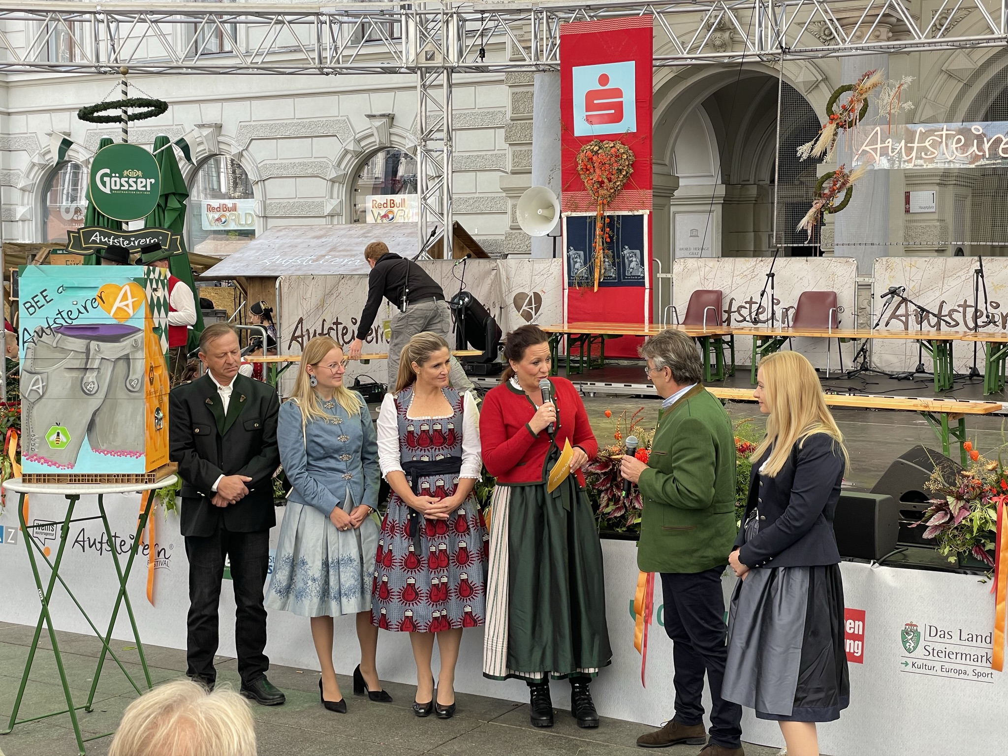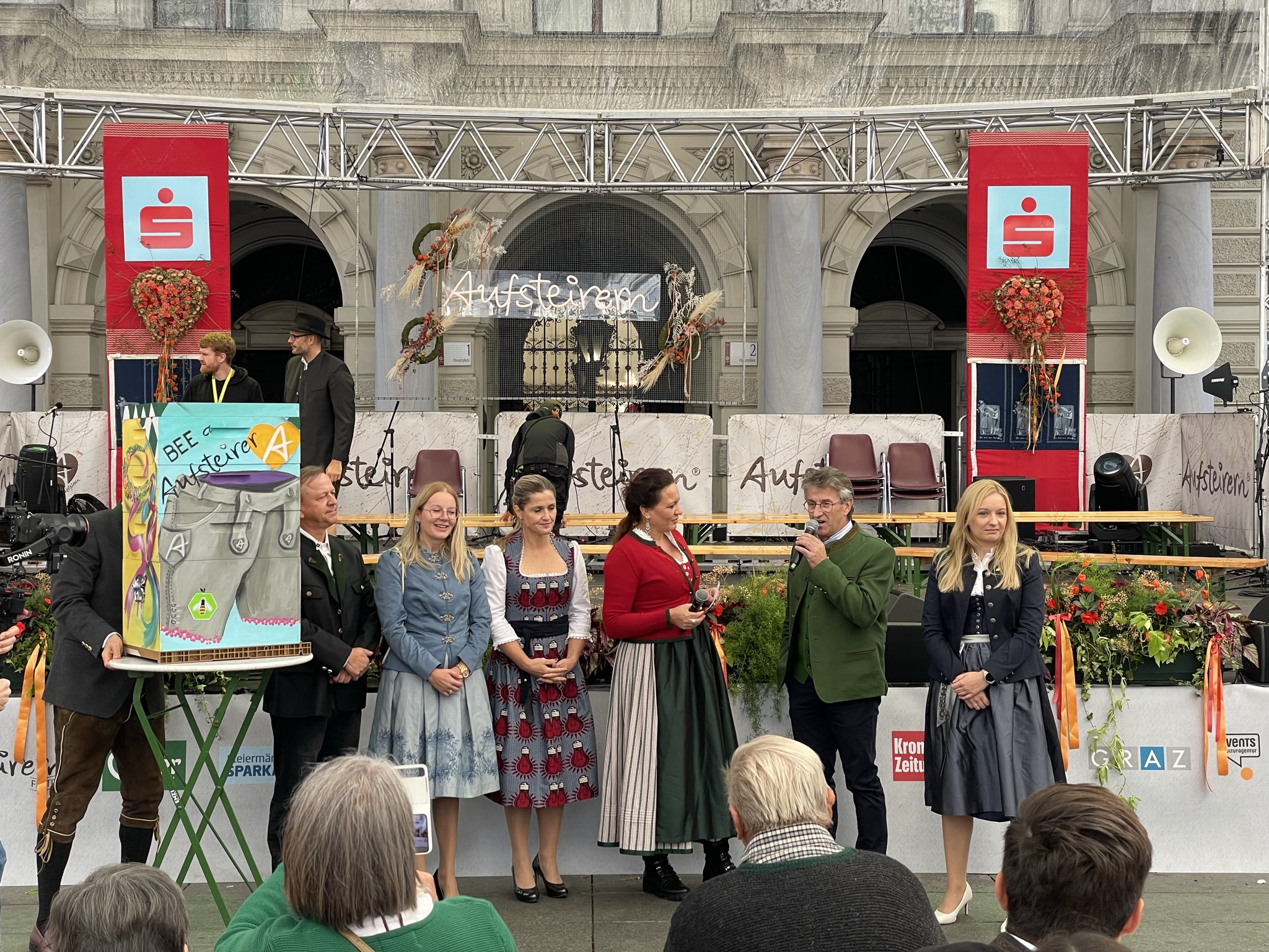 Aufsteirern ist nun ebenfalls offiziellen Partner des Gesellschaftsprojektes! Um Lebensraum für die Grazer Bienen zu schaffen, wurde auf der Aufsteirern Bühne der „BEE a Aufsteirer“ Bienenstock von Initiator und Eigentümer Manfred Hohensinner, Frutura Geschäftsführerin Katrin Hohensinner-Häupl vor tausenden Menschen präsentiert.