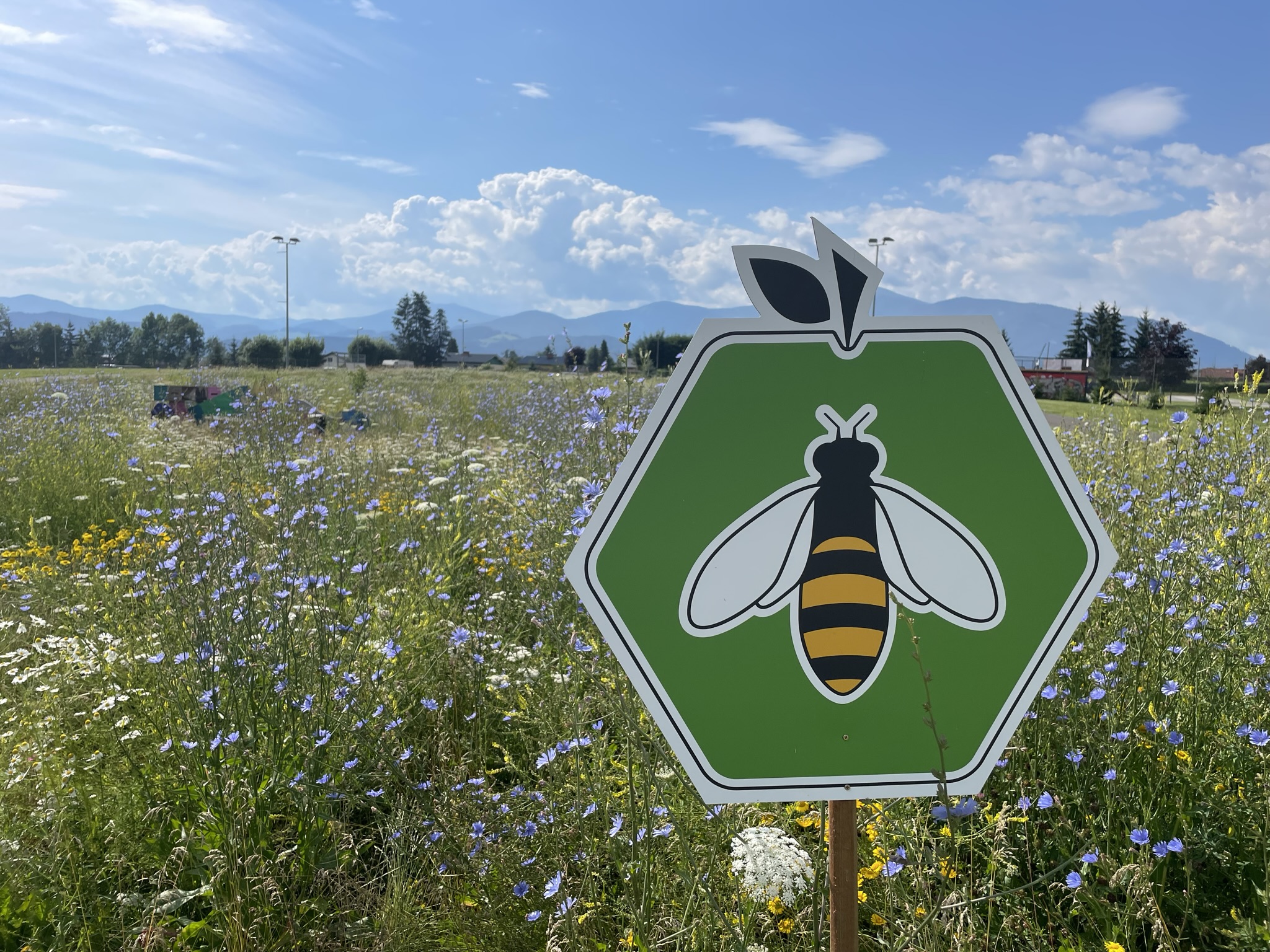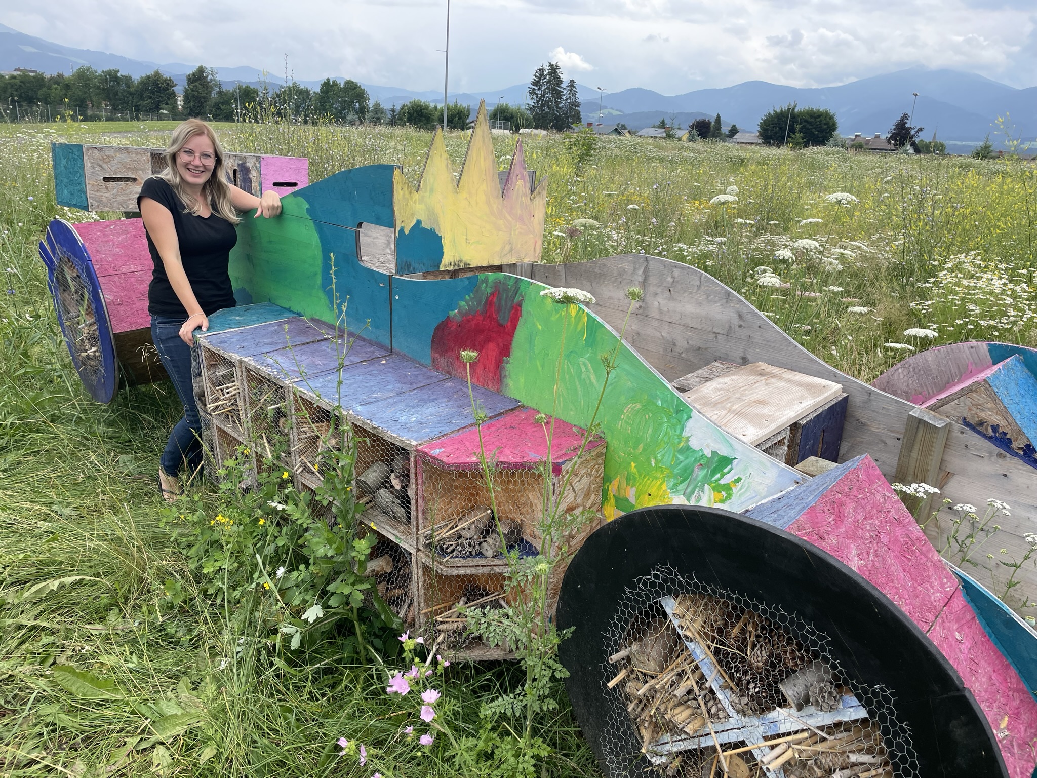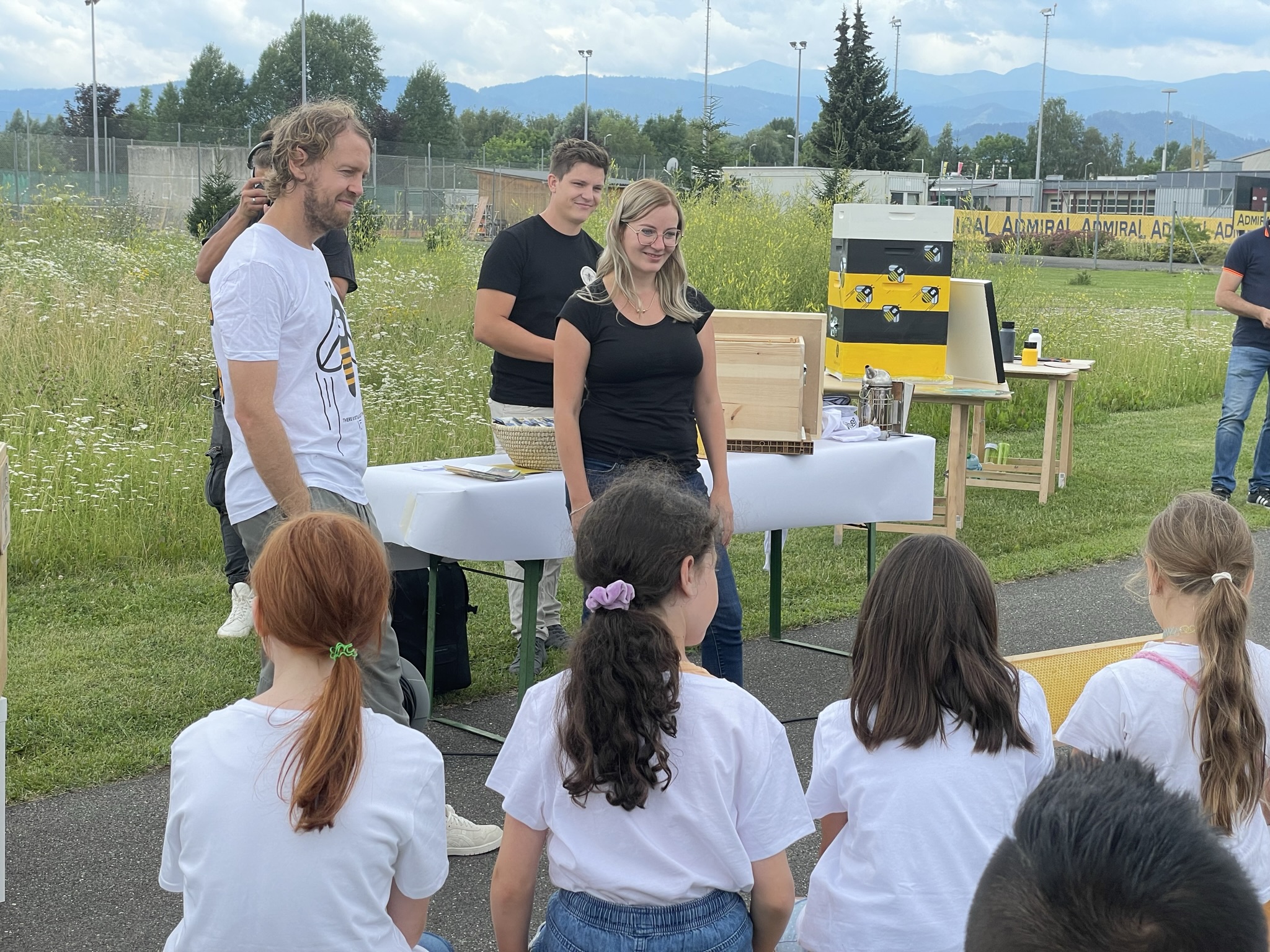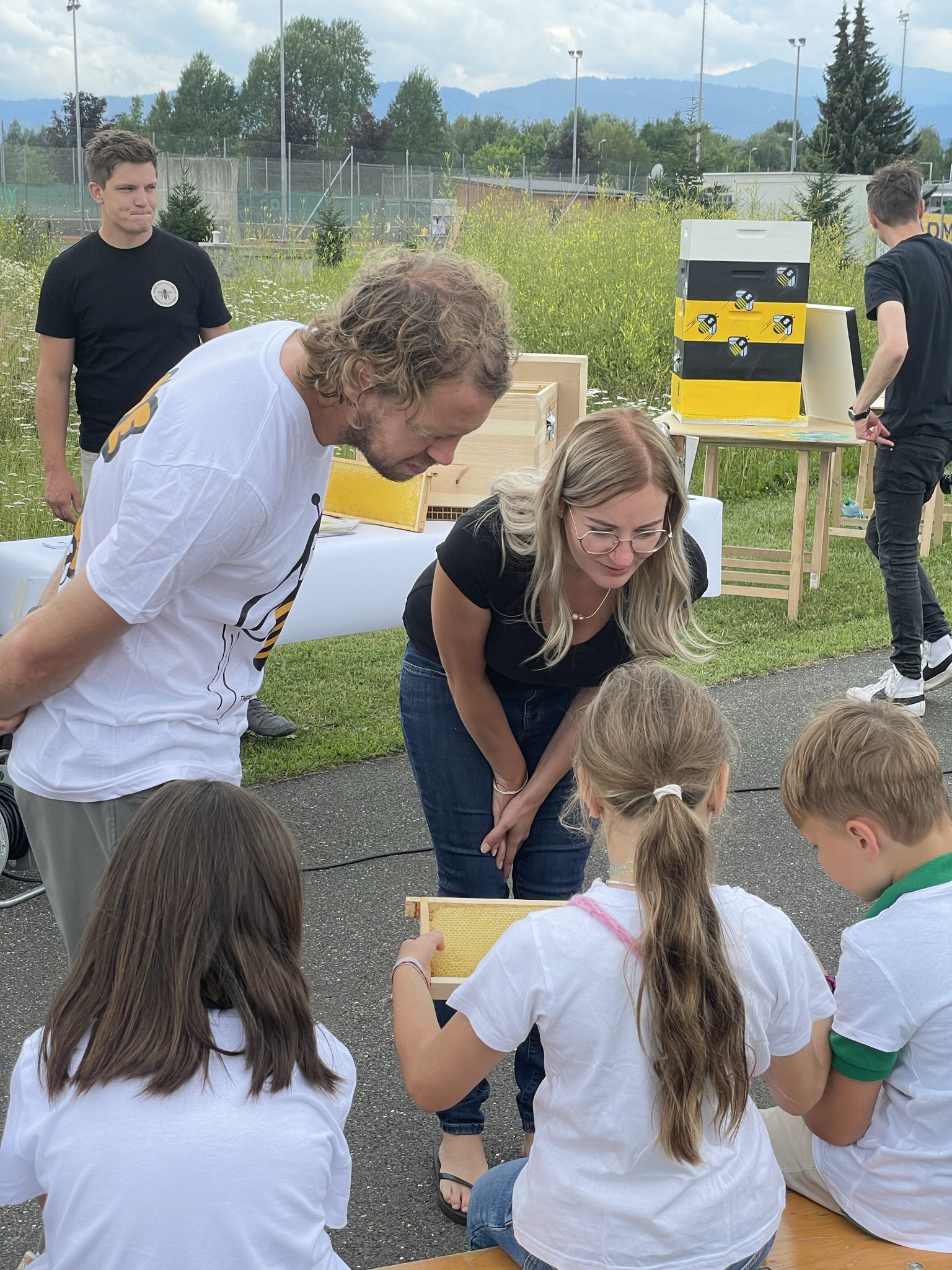 Gemeinsam haben wir Schulkindern wissenswertes über die Biene vermittelt und das im Jahr davor gebaute Bienenhotel in Form eines Rennwagens besichtigt.