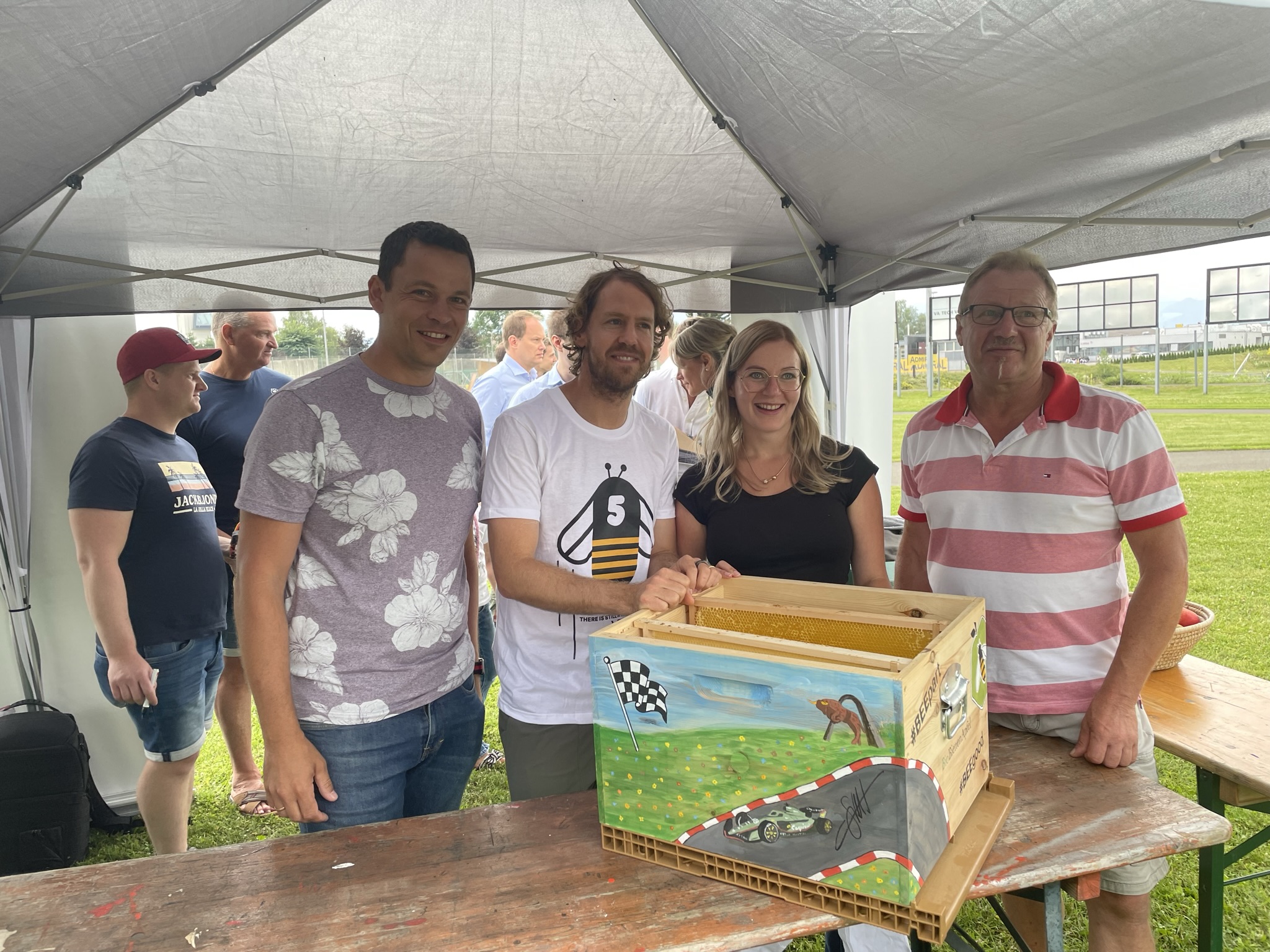 Mehr Infos gibts unter “BioBienenApfel”: https://frutura.com/biobienenapfel-aktuelles/sebastian-vettel-bienenstock-der-zukunft/